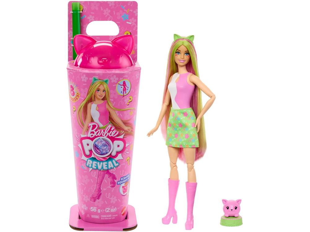 Les poupées Barbie Pop Reveal issues de la série Shakes offrent une expérience sensorielle lors du déballage, avec huit surprises placées à l’intérieur d’un gobelet à smoothie.