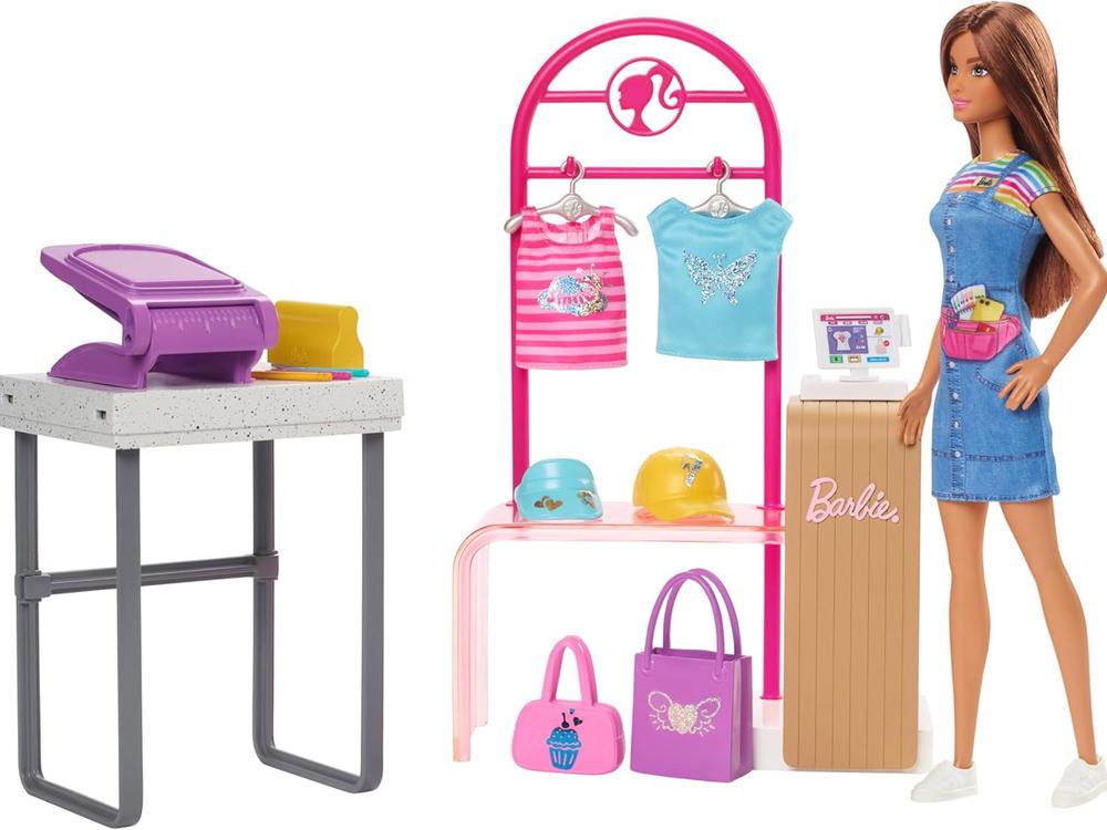 Les enfants peuvent s’inventer une histoire sur mesure dans l’industrie de la mode avec cette poupée Barbie et le coffret Boutique Créations !